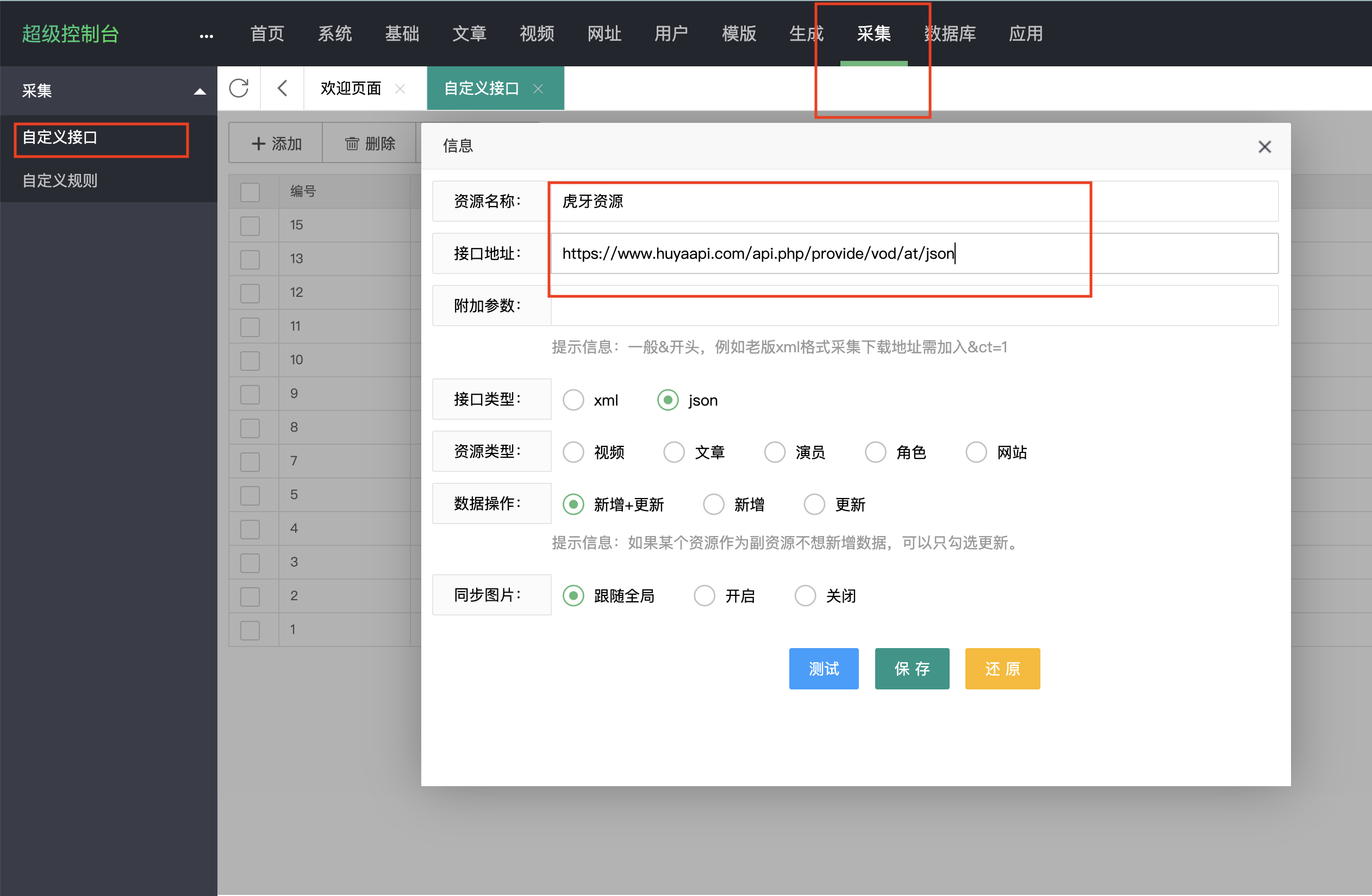 虎牙资源xml采集接口:https://www.huyaapi.com/api.php/provide/vod/at/xml/